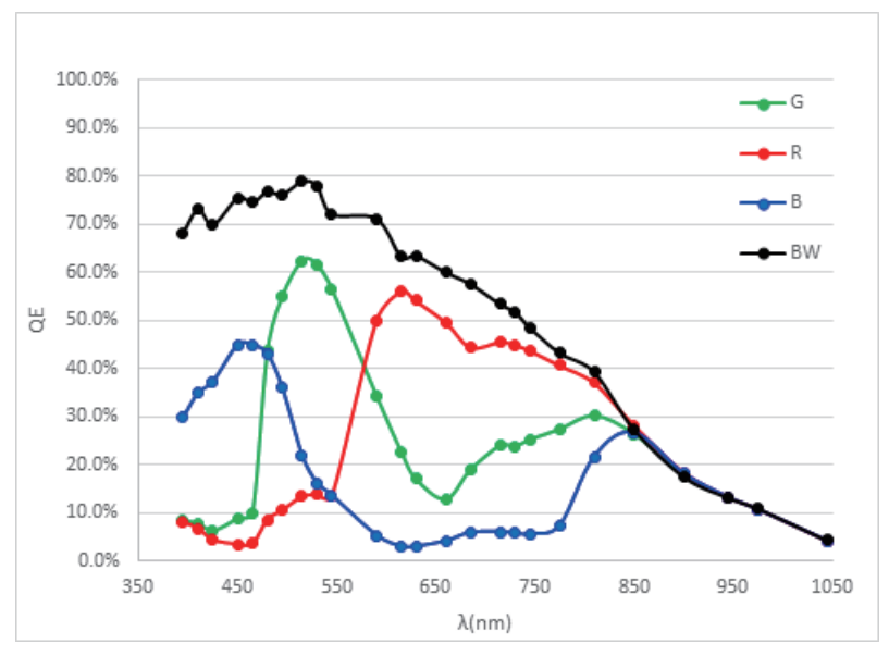 灵敏度 40@B/W / 18@Green channel V/lux.s